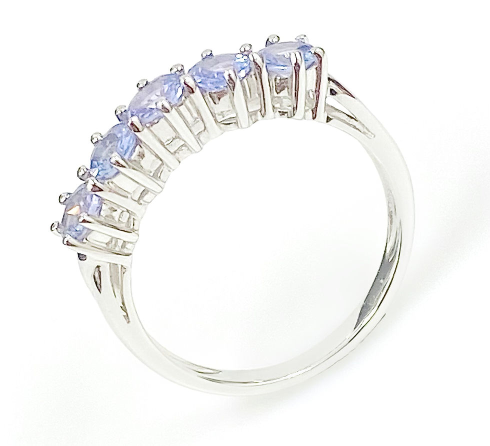Round Brilliant Cut Tanzanite Five Stone Ring in 9 Carat White Gold